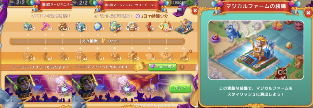 - 今回は最後の報酬がマジカルファームのランドマーク、ゴールデンチケットの最後の報酬が30分無限エネルギー