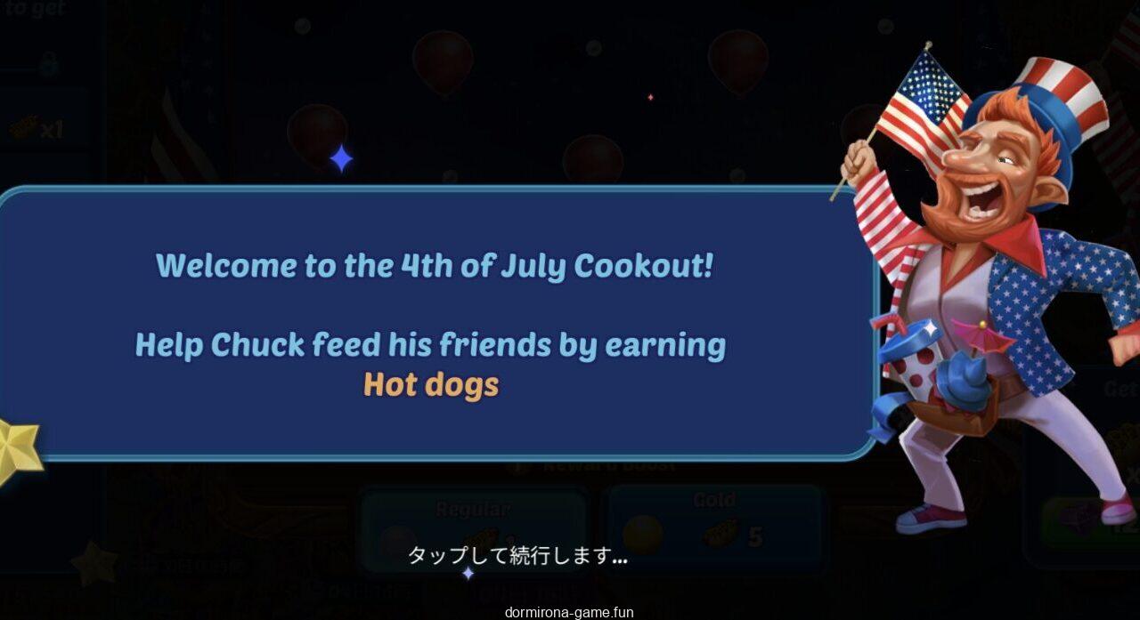 - 手に入れたホットドッグに応じたボールを使用して画面中央のミニゲームをし、報酬を手に入れる