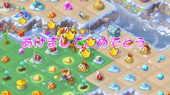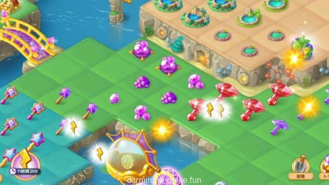 - 障害物や宝箱から出る花火のピースをマージして、赤ノームで建設しよう