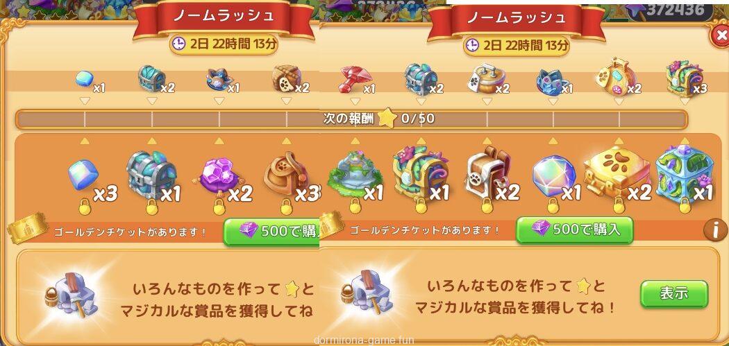 - 建物、ガーデン、シーズナル各ピースを建設してピンクのポイントを集め報酬をもらう