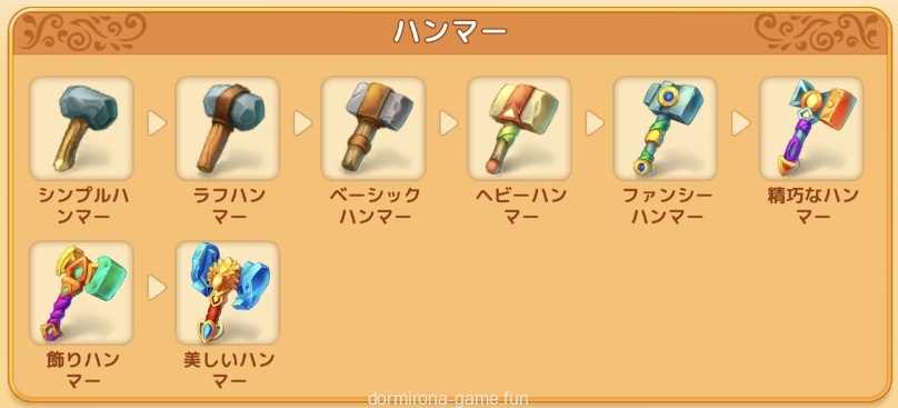 ハンマー 4⇒5段階以降 | ルビーの粉 |