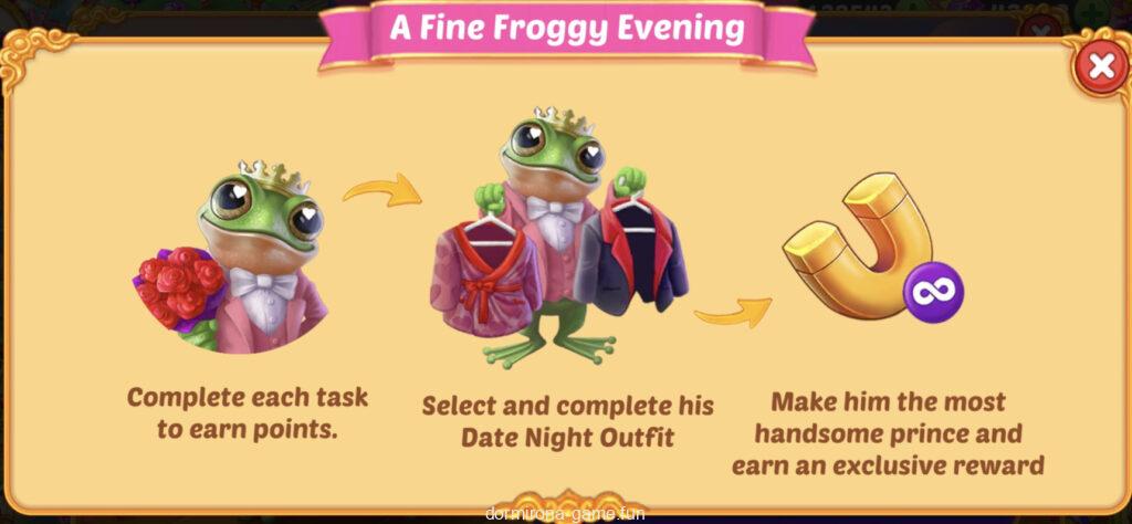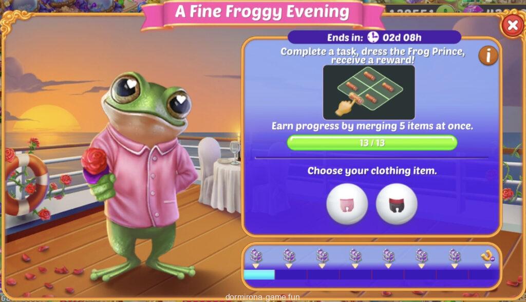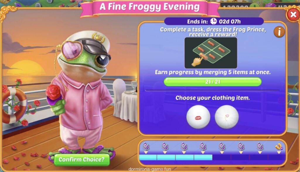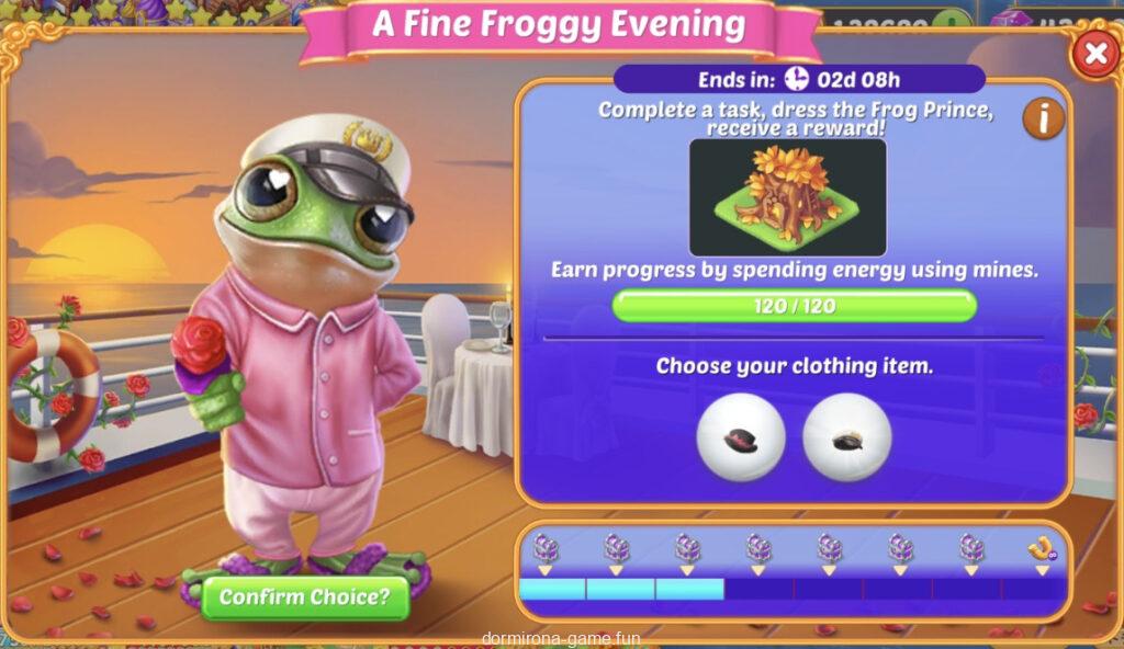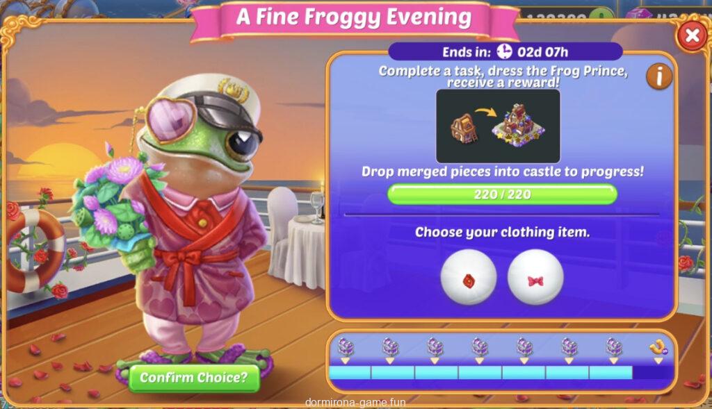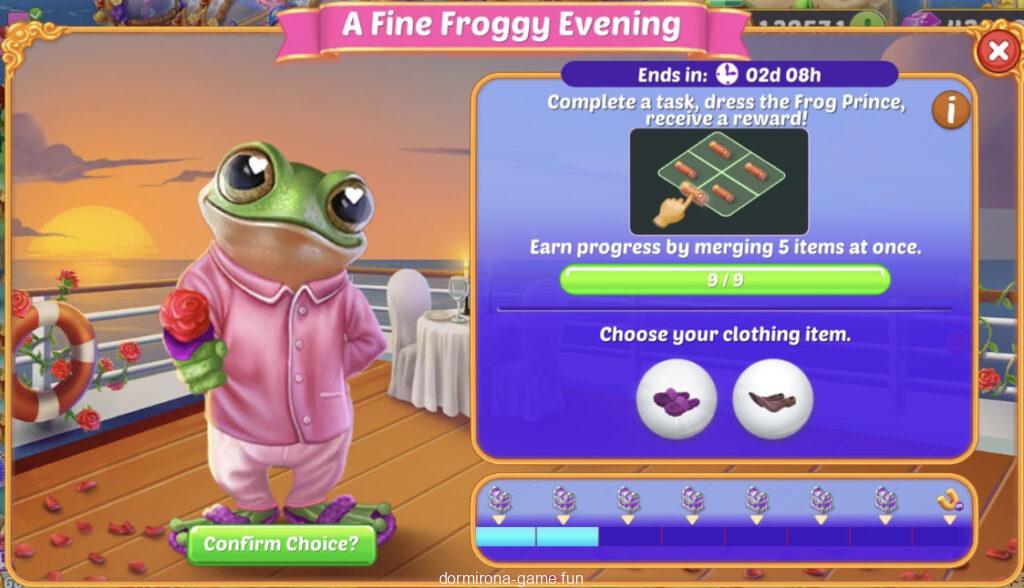 - タスクをこなしてカエルの王子様が素敵なカエルの夕べに行くときの服装を選ぶ(2択)