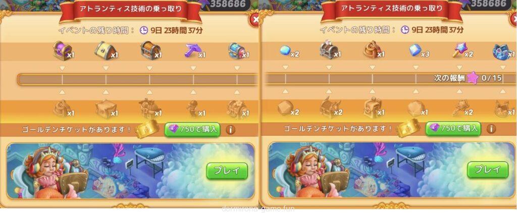 - アトランティスの住人を作ってポイントを集め、イベントマップ画面左上のポイントごとに報酬がもらえる