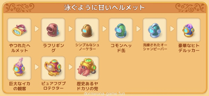 泳ぐように甘いヘルメット 3⇒4段階目、足病用プロペラ 4⇒5段階以降 | ブロンズの粉 |