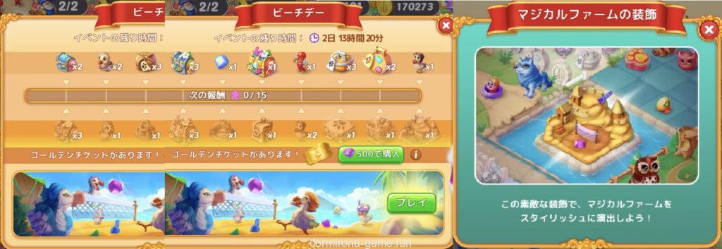 - パラソルは3段階目、浮き輪は4段階目以降