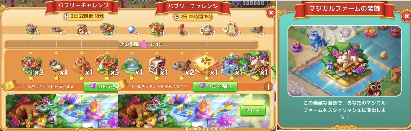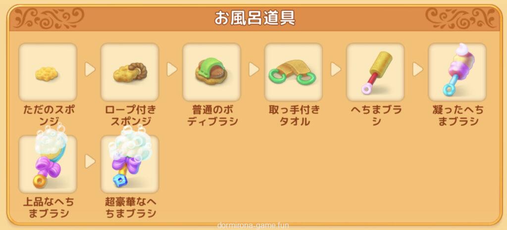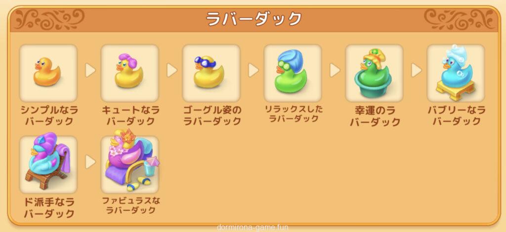 • ラバーダックは3段階目以降、お風呂道具は4段階目以降