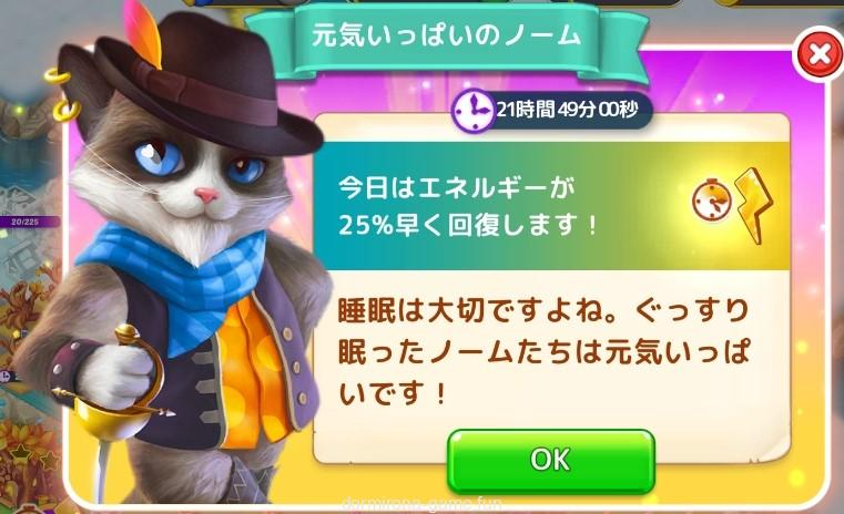- エネルギーが回復するのが25%速くなり、カウントダウン欄が黄色くなる(1エネルギー3分で回復⇒2分15秒で回復)