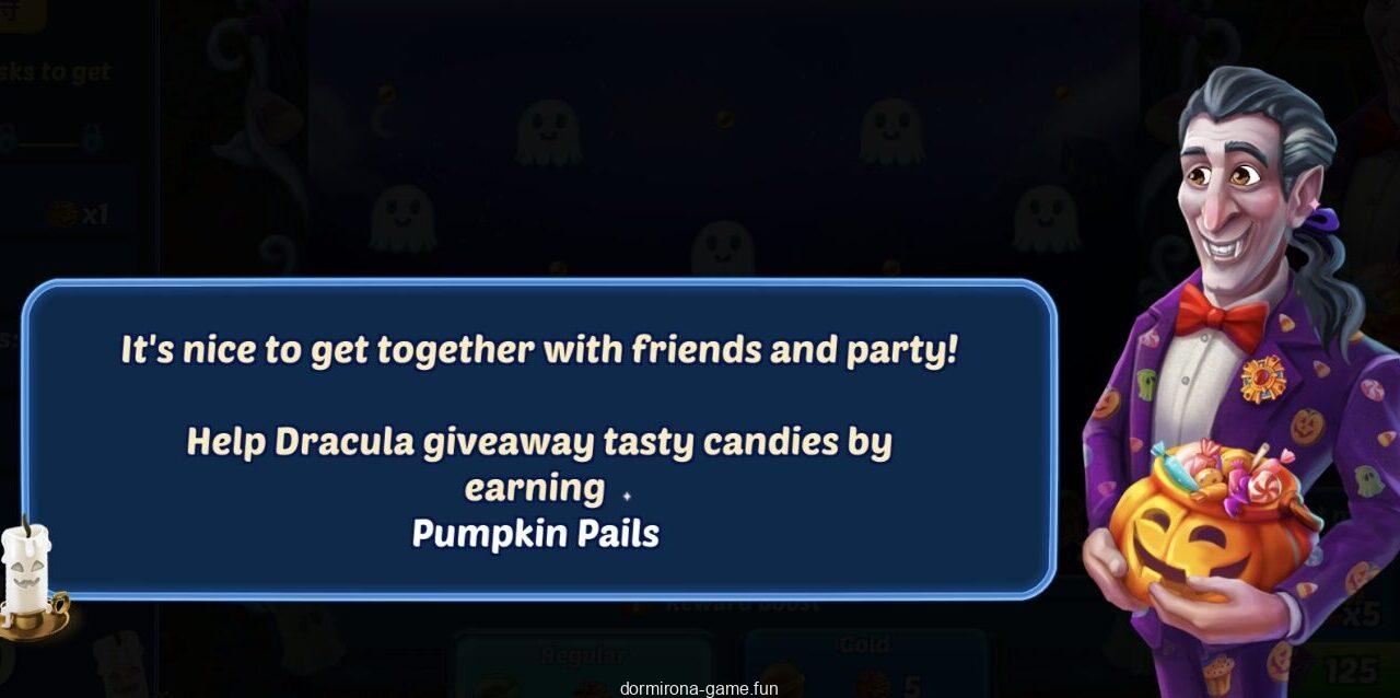 - タスクをクリアし、キャンディ―を集めてPumkin Pailsに入れるミニゲームをして報酬を受け取る