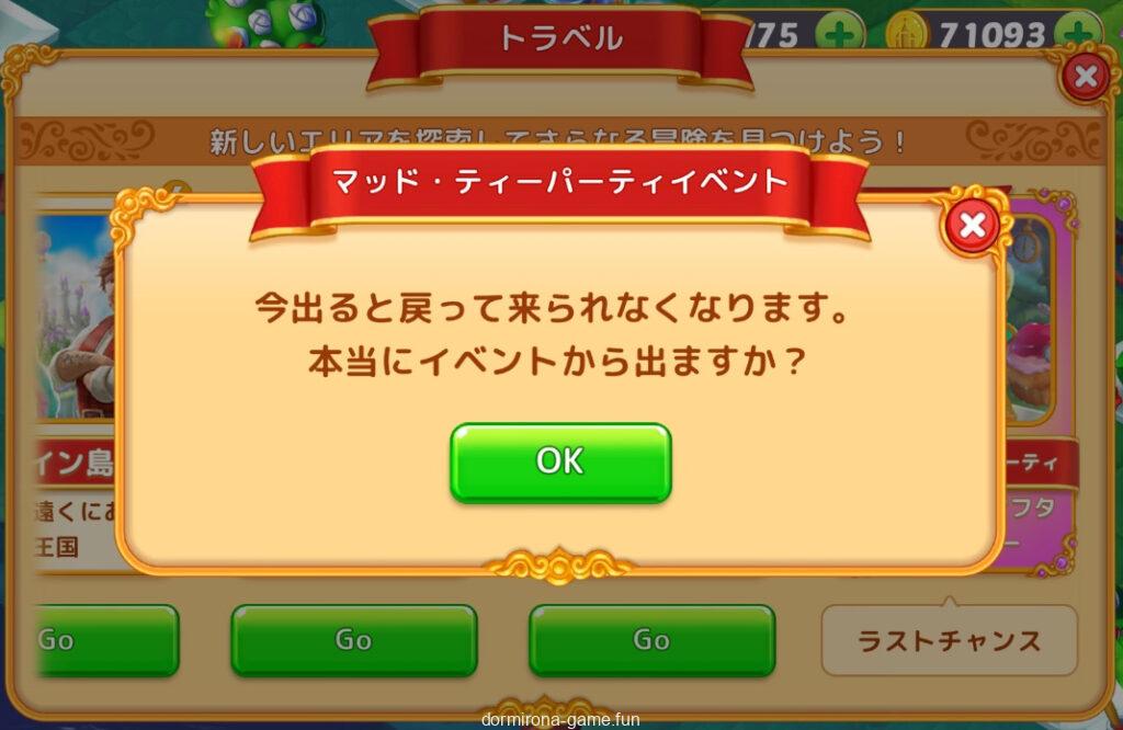 - 他のマップにいたままだとそのまま終了してしまうので、先にコイン、ルビー等は回収しておくかイベントマップでログアウトするようにする