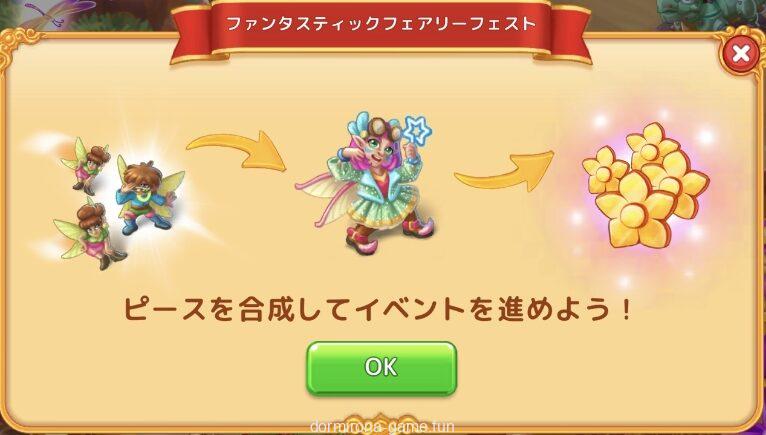 - アイテムをマージするとが出てくるのでそれをマージし妖精祭りの参加者を作る