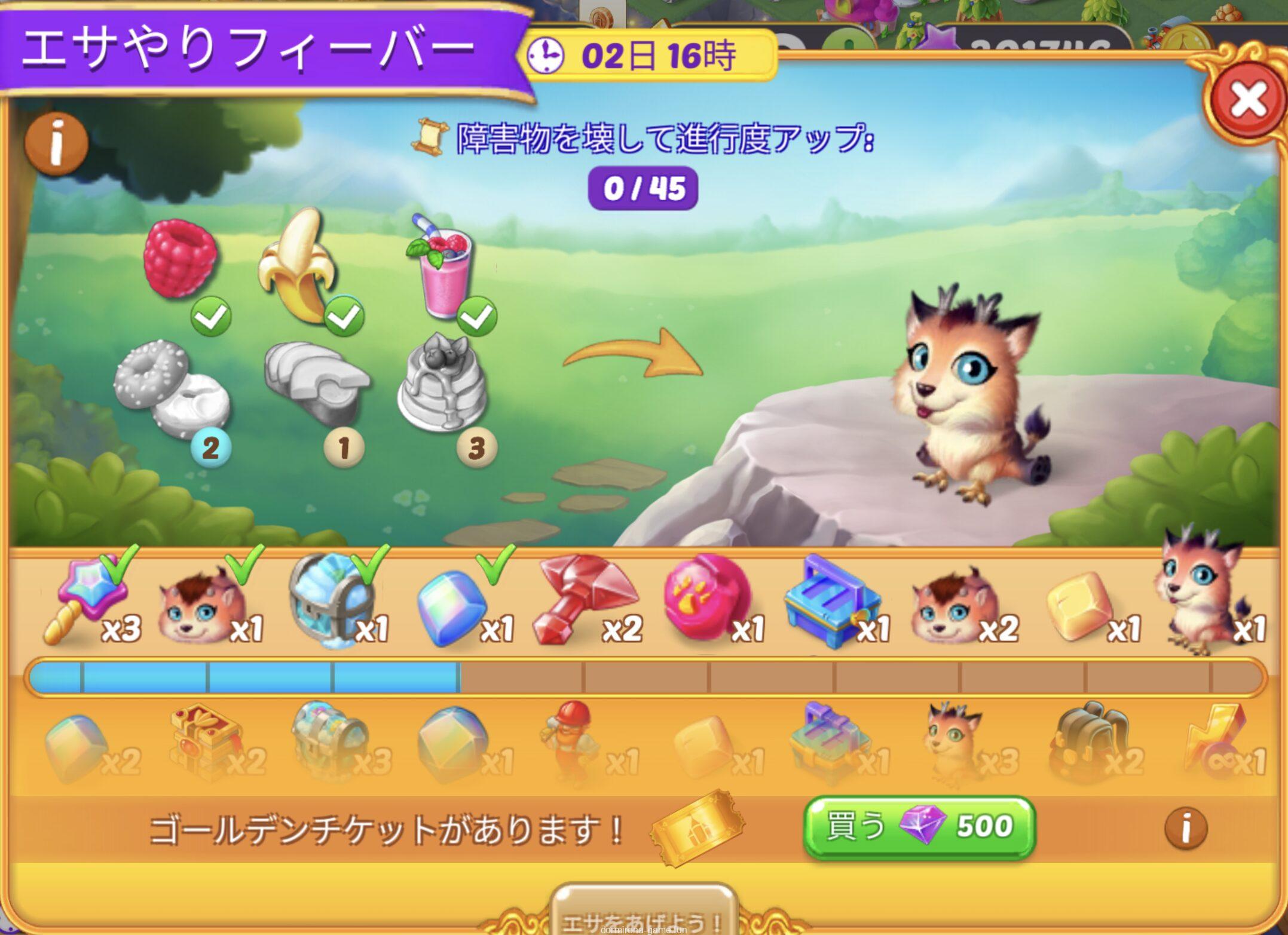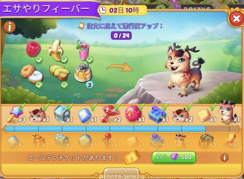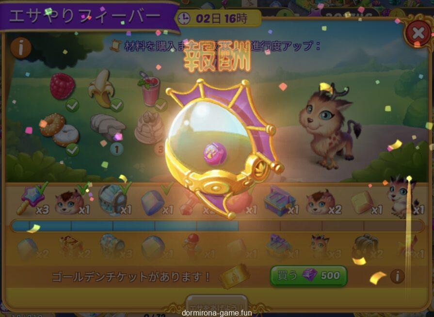 - タスクが終わるごとにグレイアウトした果物に色がついていきカリグレイハウンドが成長する