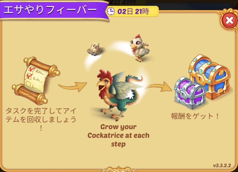 - タスクをこなしてコカトリスに餌をやり成長させる