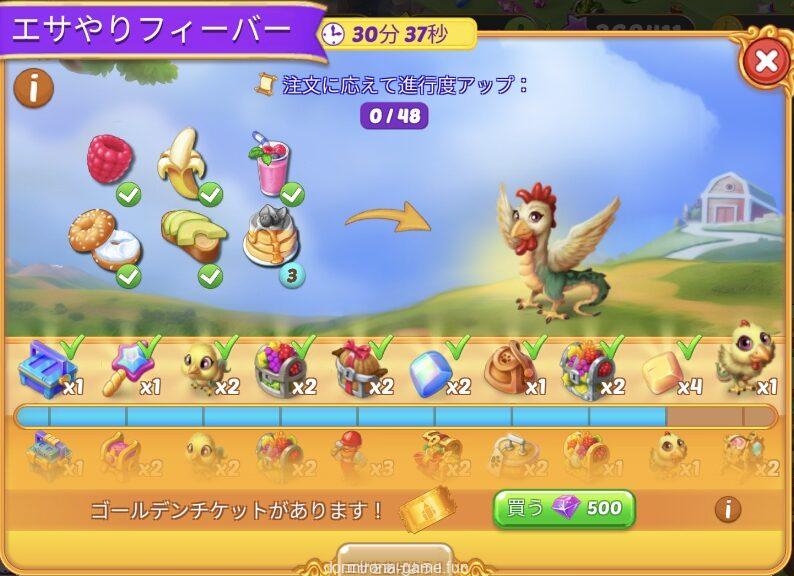 - タスクが終わるごとにグレイアウトした果物に色がついていきコカトリスが成長する