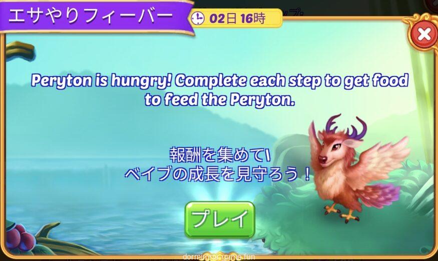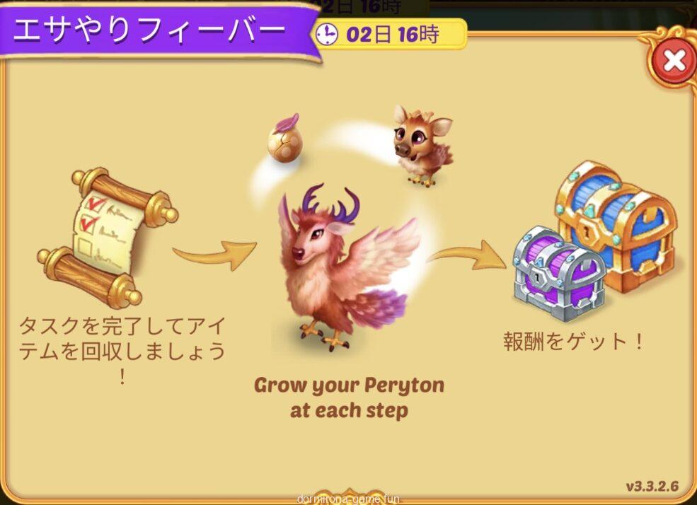 - タスクをこなしてペリュトンに餌をやり成長させる