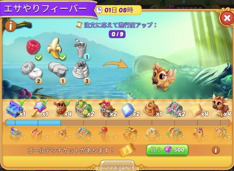 - 材料を購入または収穫して進行度アップ
