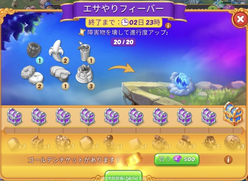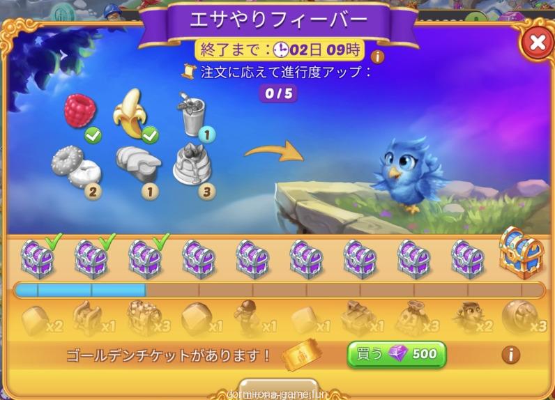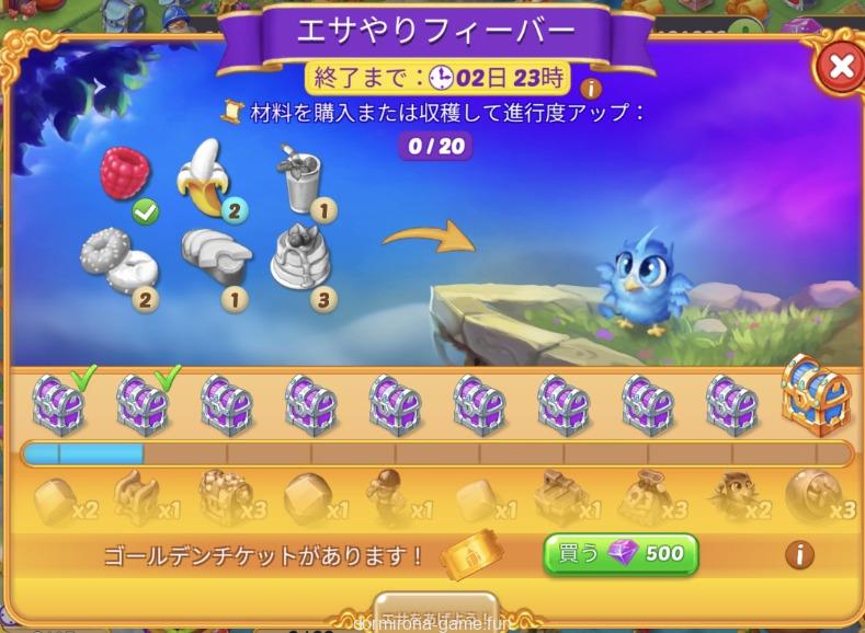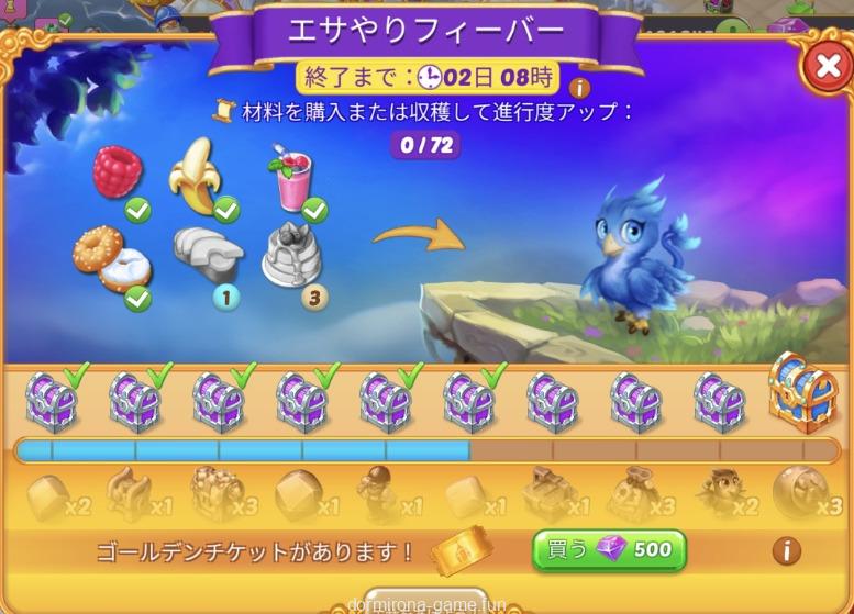 - 材料を購入または収穫して進行度アップ