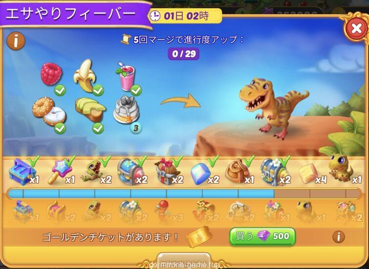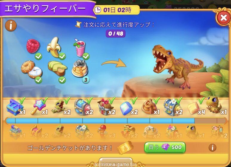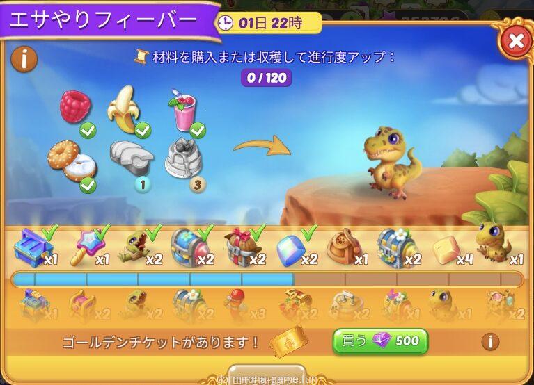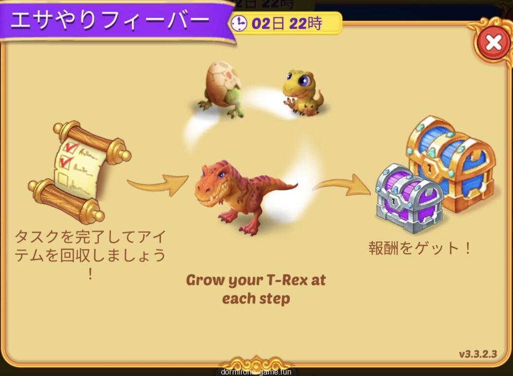 - タスクが終わるごとにグレイアウトした果物に色がついていきTレックスが成長する