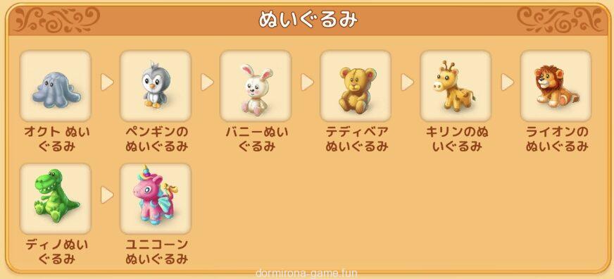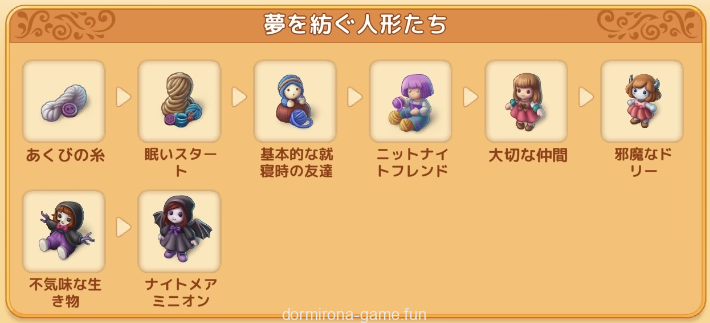 - 夢を紡ぐ人形たちは3段階目以降、ぬいぐるみは4段階目以降