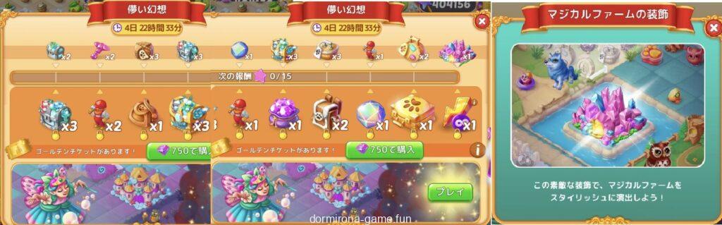- 今回は最後の報酬がマジカルファームのランドマーク、ゴールデンチケットの最後の報酬が30分エネルギー×1
