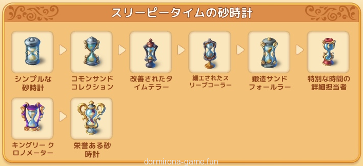 夢を紡ぐ人形たち 3⇒4段階目、スリーピータイムの砂時計 4⇒5段階以降 | ブロンズの粉 |