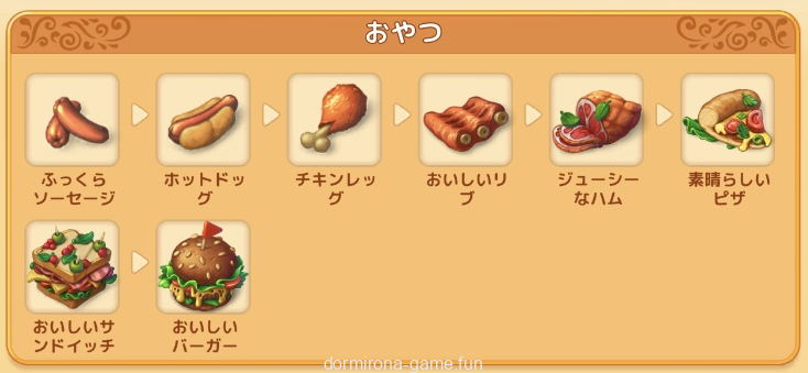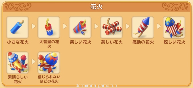 花火 3⇒4段階目、おやつ 4⇒5段階以降 | ブロンズの粉 |