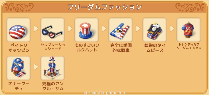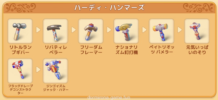 - ハーティ・ハンマーズは3段階目以降、フリーダムファッションは4段階目以降