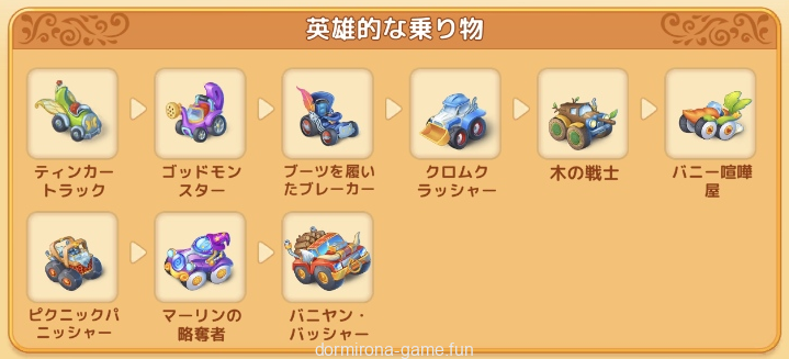 - アイテムをマージするとティンカートラックが出てくるのでそれをマージし英雄的な乗り物を作る
