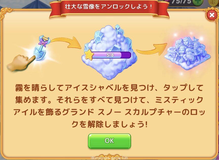 - 全てのチェーンを埋めたい場合は雪の彫刻を5段階目以上にマージした場合、5エネルギーがもらえるので有効活用する