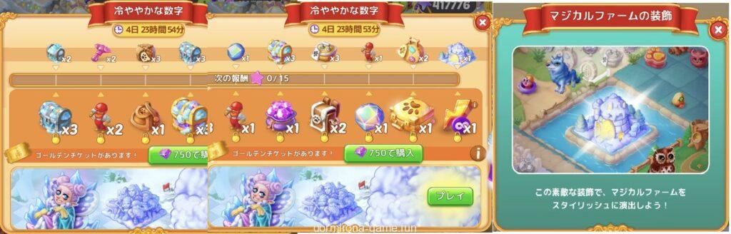 - 今回は最後の報酬がマジカルファームのランドマーク、ゴールデンチケットの最後の報酬が30分エネルギー×1