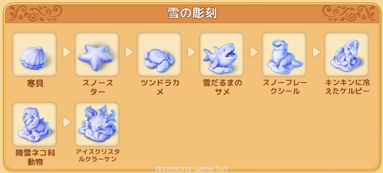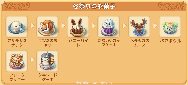 - 冬まつりのお菓子は3段階目以降、雪の彫刻は4段階目以降