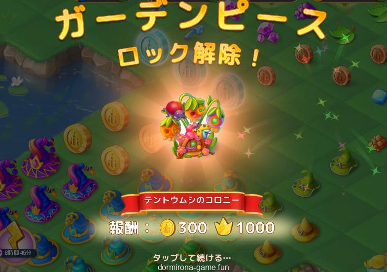 - 作物収穫時、ランダムでガーデンピースが出て来るのでそれを最終形までマージする