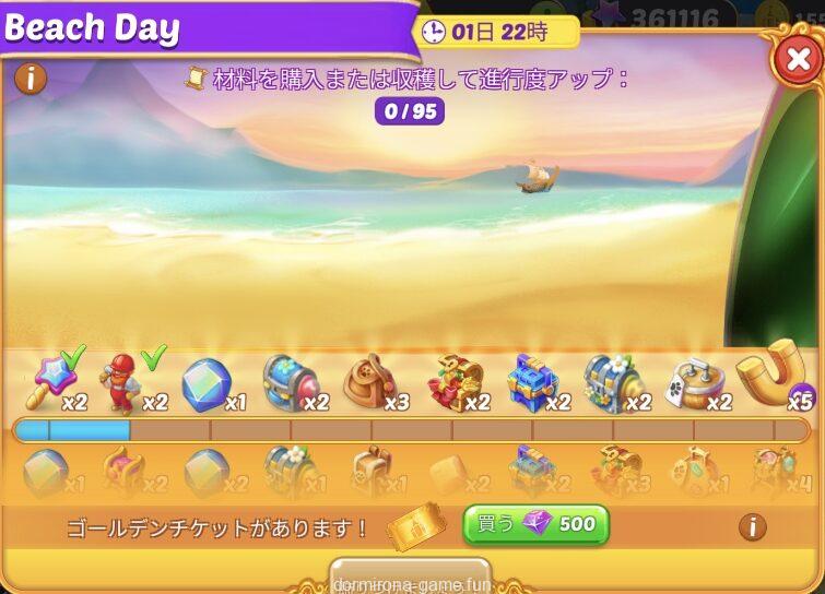 - 筆者は多忙なため攻略できない可能性大、画像はBeach Dayの際のもの