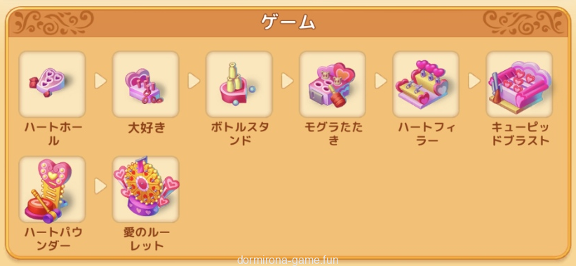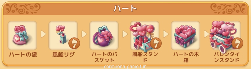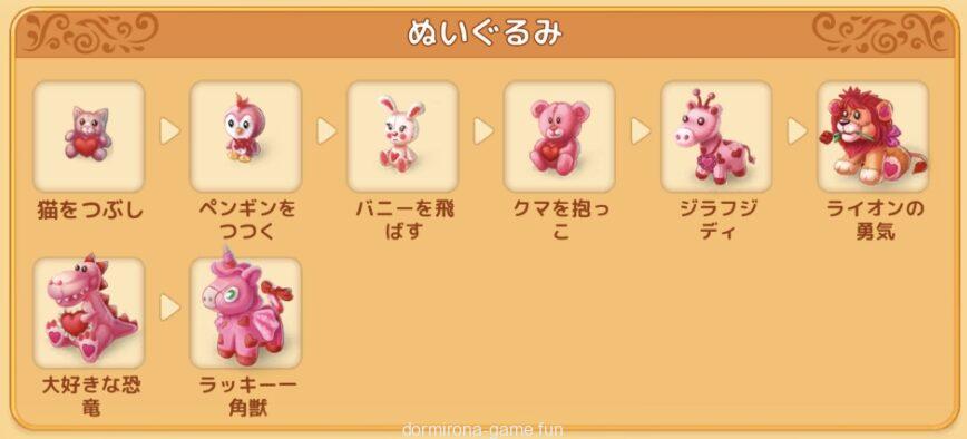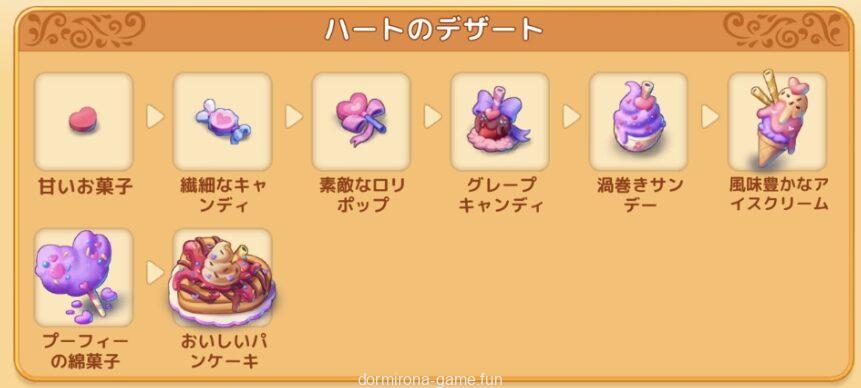 - ハートのデザートは3段階目以降、ぬいぐるみは4段階目以降