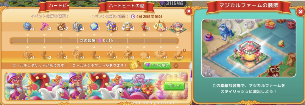 - 今回は最後の報酬がマジカルファームのランドマーク、ゴールデンチケットの最後の報酬が30分エネルギー×1