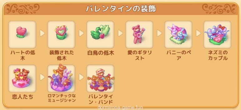 - バレンタインの装飾をを作ってポイントを集め、イベントマップ画面左上のポイントごとに報酬がもらえる