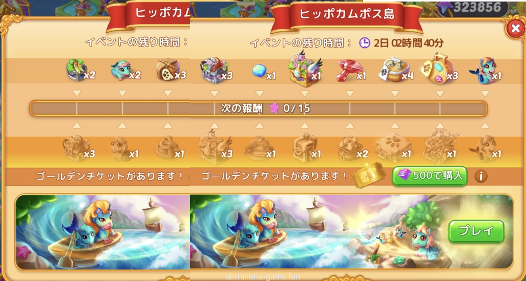 - 以前と仕様が変わり、イベントクリア後もマージ時エネルギー、ブロンズの粉、ルビーの粉は出るが、ヒッポカムポスのオーブは出なくなる