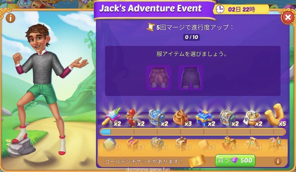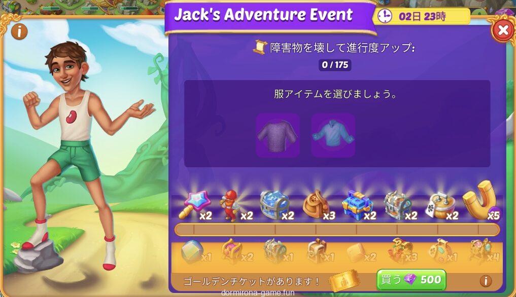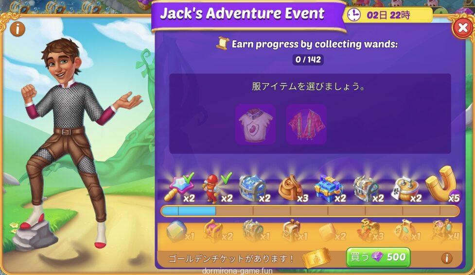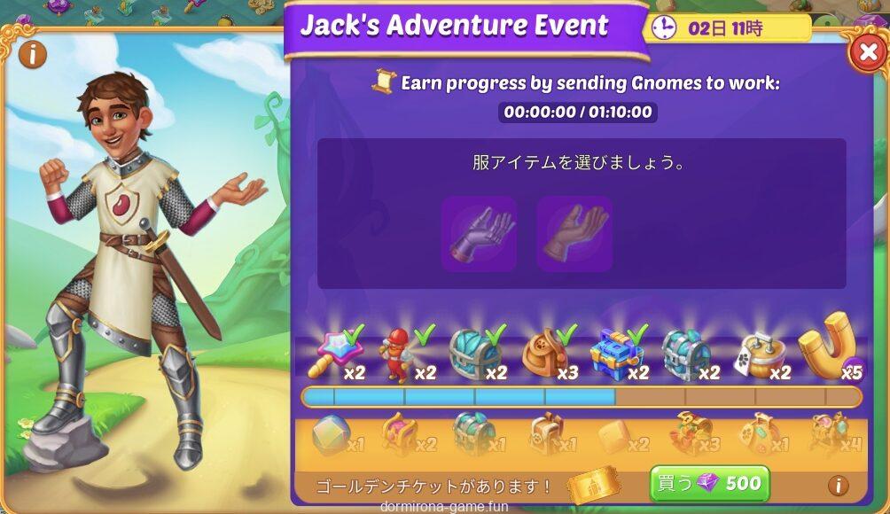 - タスクをこなしてジャックが冒険に行くときの服装を選ぶ(2択)