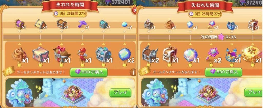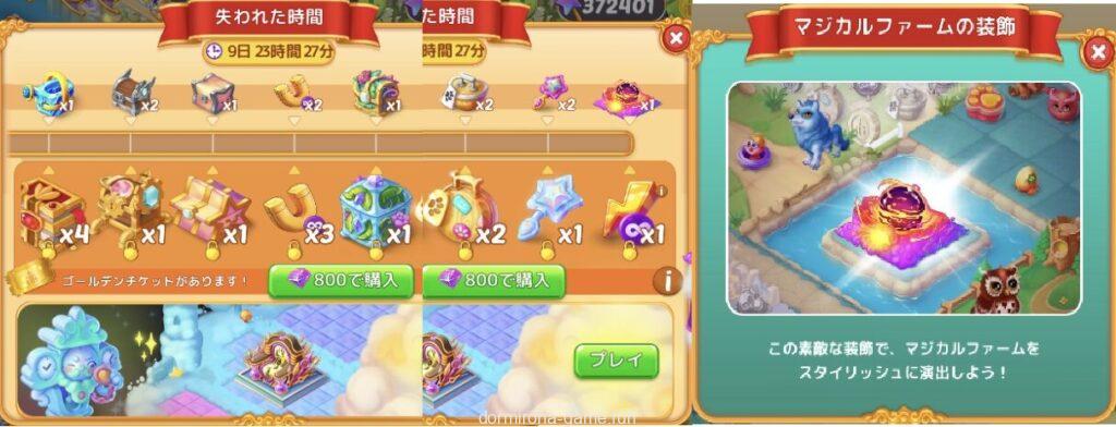 - 今回は最後の報酬がマジカルファームのランドマーク、ゴールデンチケットの最後の報酬が30分エネルギー×1