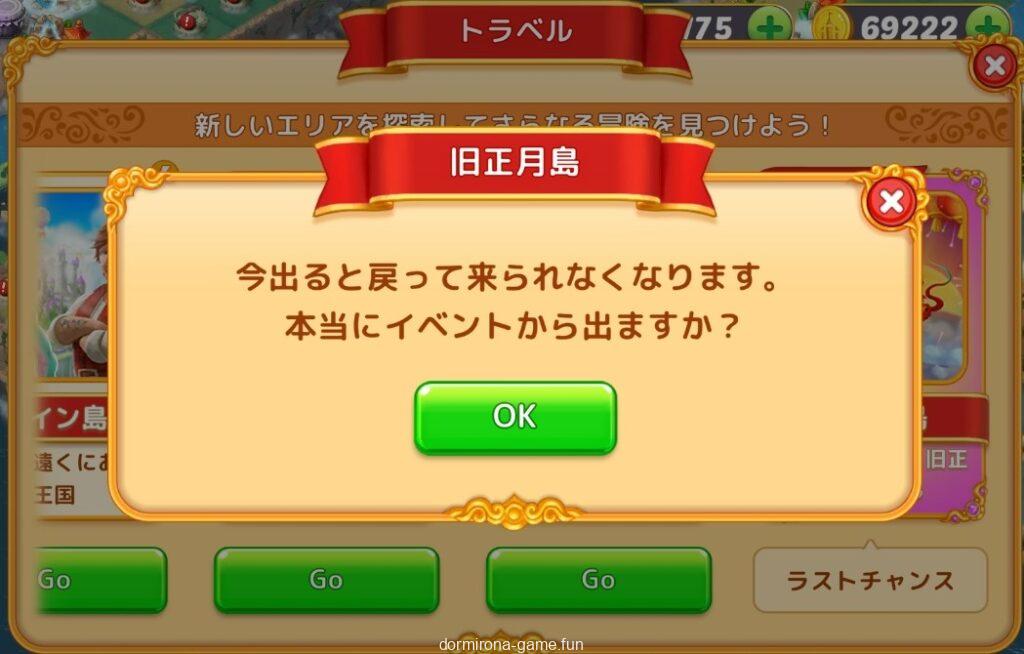 • 他のマップにいたままだとそのまま終了してしまうので、先にコイン、ルビー等は回収しておくかイベントマップでログアウトするようにする