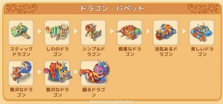 - 基本は5マージ、最後のドラゴン・パペット作るときは3マージがおすすめ