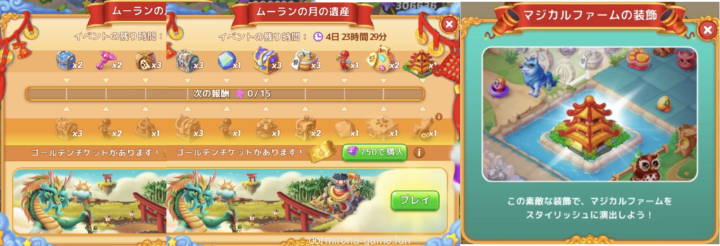 - 今回は最後の報酬がマジカルファームのランドマーク、ゴールデンチケットの最後の報酬が30分エネルギー×1