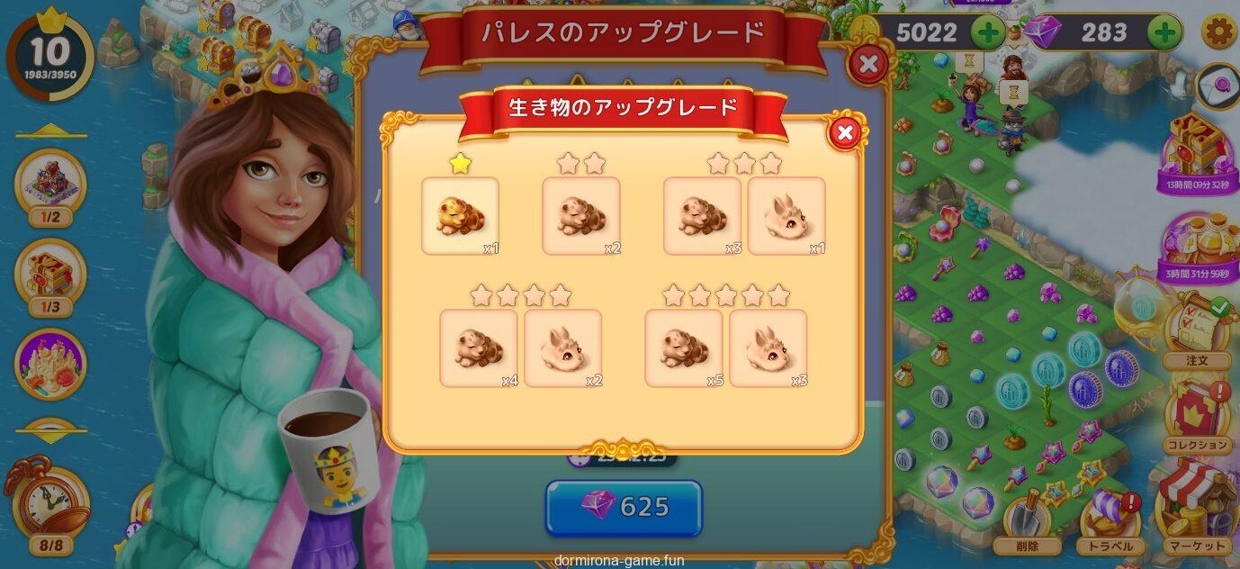 - パレスをアップグレードするほど数や種類が増える