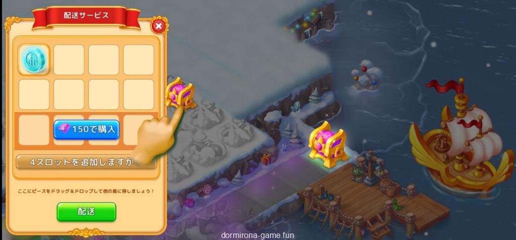 - 送りたいアイテムをドラッグ&ドロップして輸送船に積んで配送ボタンを押す