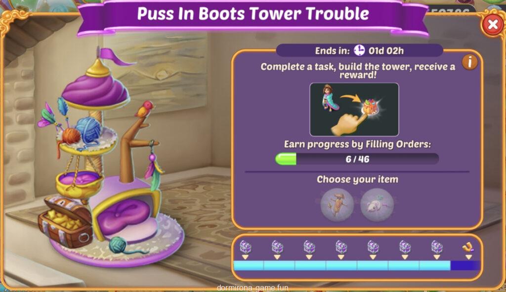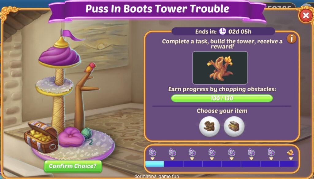 - タスクをこなして長靴をはいた猫のキャットタワーを選ぶ(2択)