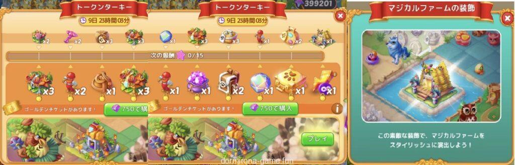 - 今回は最後の報酬がマジカルファームのランドマーク、ゴールデンチケットの最後の報酬が30分エネルギー×1