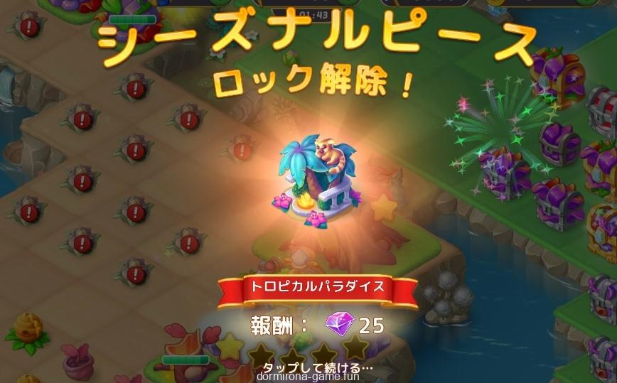 - シーズナル宝箱から出るシーズナルピースをマージ、建設してエメラルドのポイント/海賊の地図を集める
