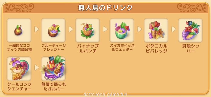 - 無人島のドリンクは3段階目以降、怪しいロッドは4段階目以降