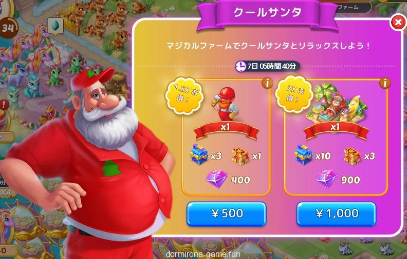 - シーズナル宝箱、赤ノーム、マジカルファームのパッケージ、ルビー、クリスタル、無限エネルギーがもらえる