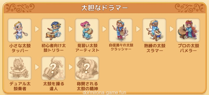 - アイテムをマージすると小さな太鼓タッパーが出てくるのでそれをマージし大胆なドラマーを作る