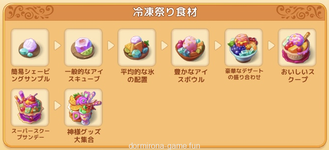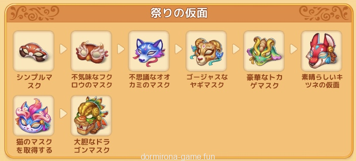 - 冷凍祭り食材は3段階目以降、祭りの仮面は4段階目以降